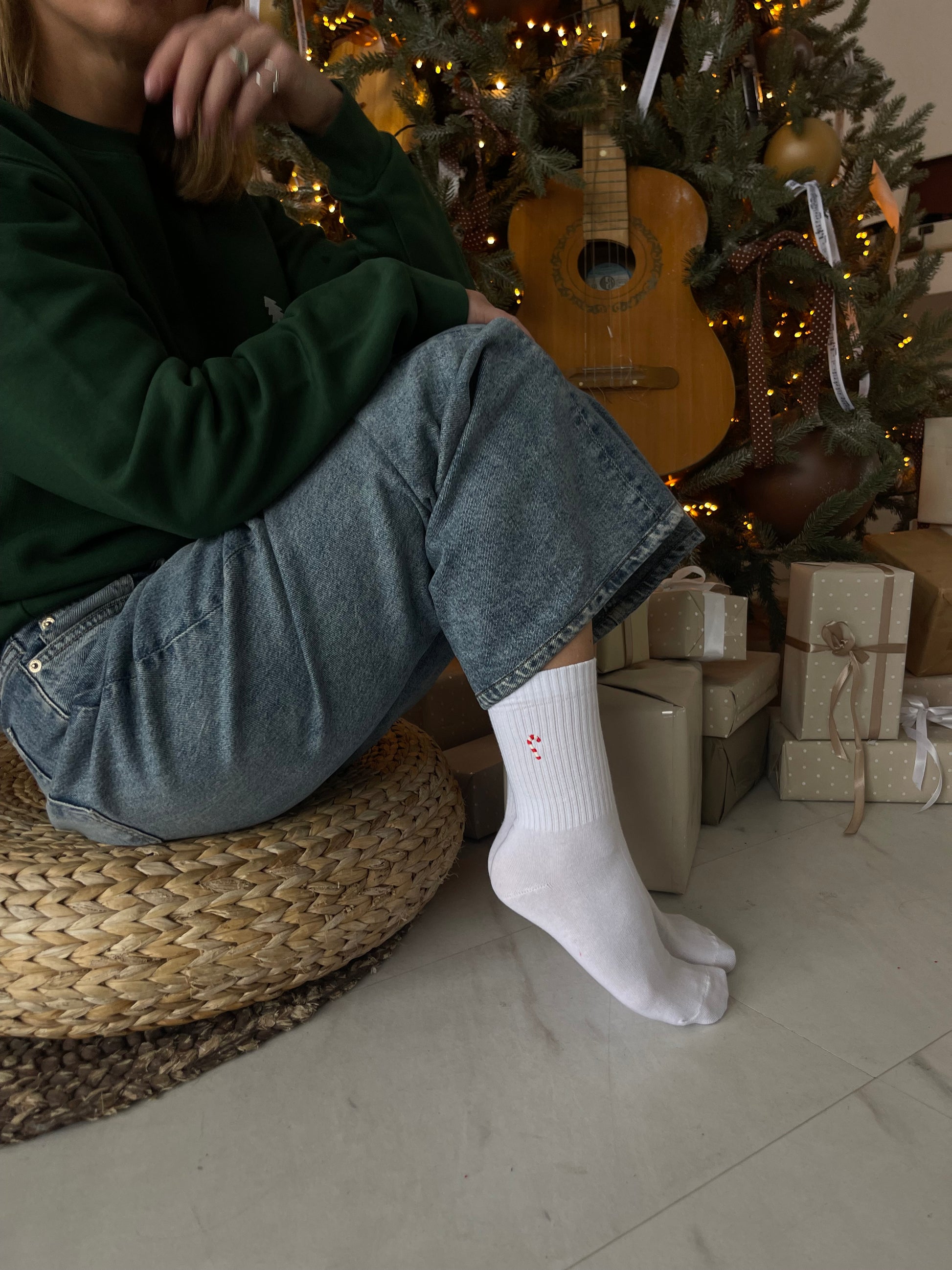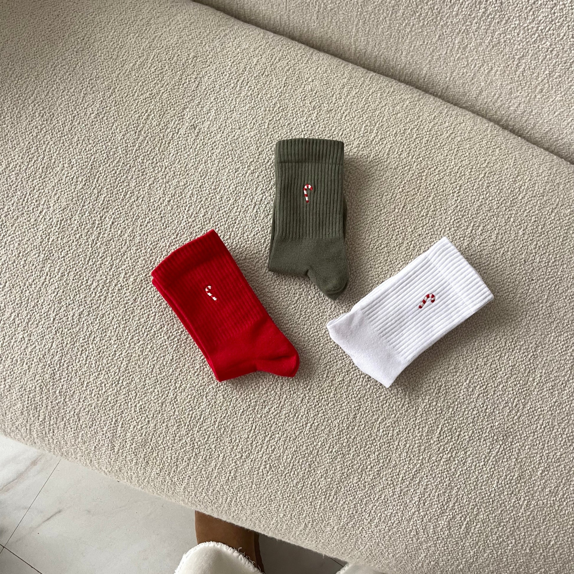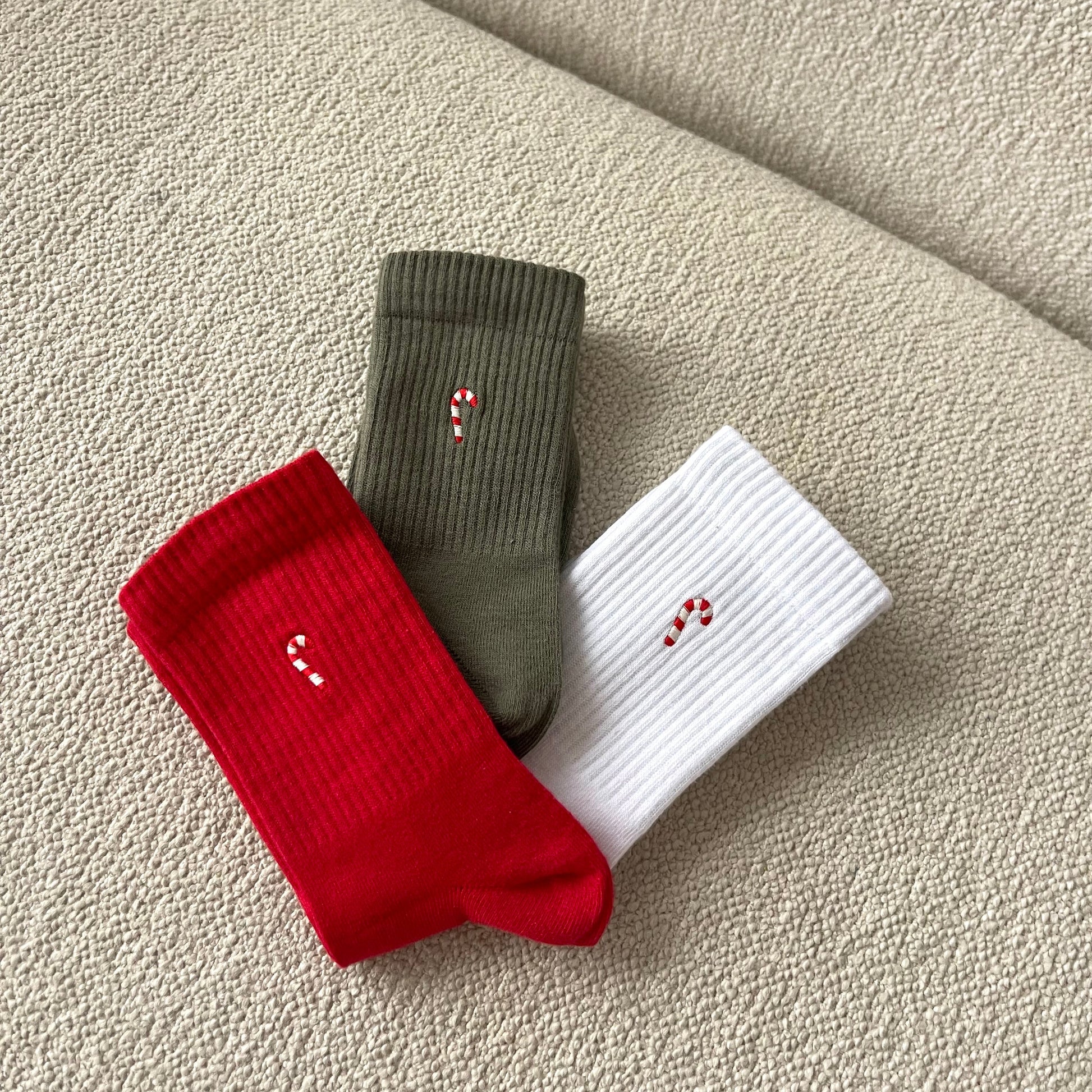 Klasikinės kojinės su išsiuvinėtu Kalėdiniu saldainiuku!