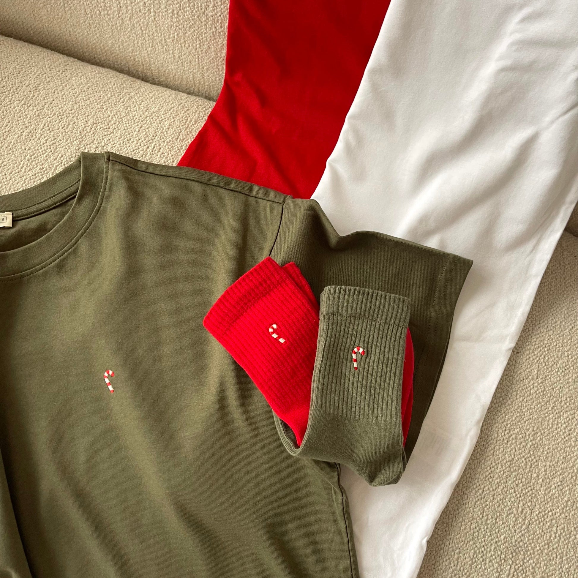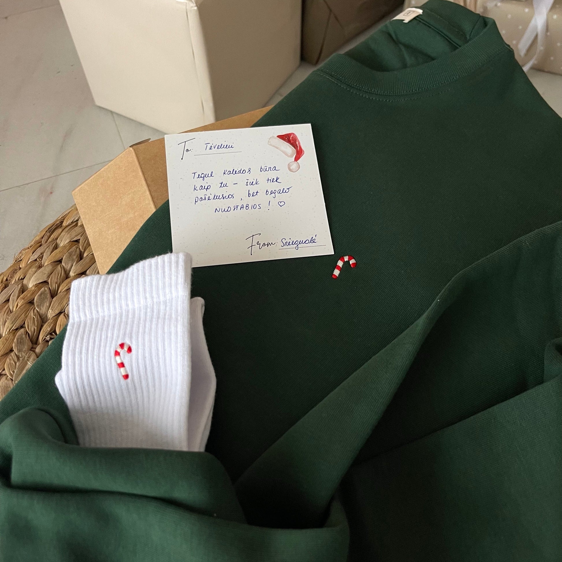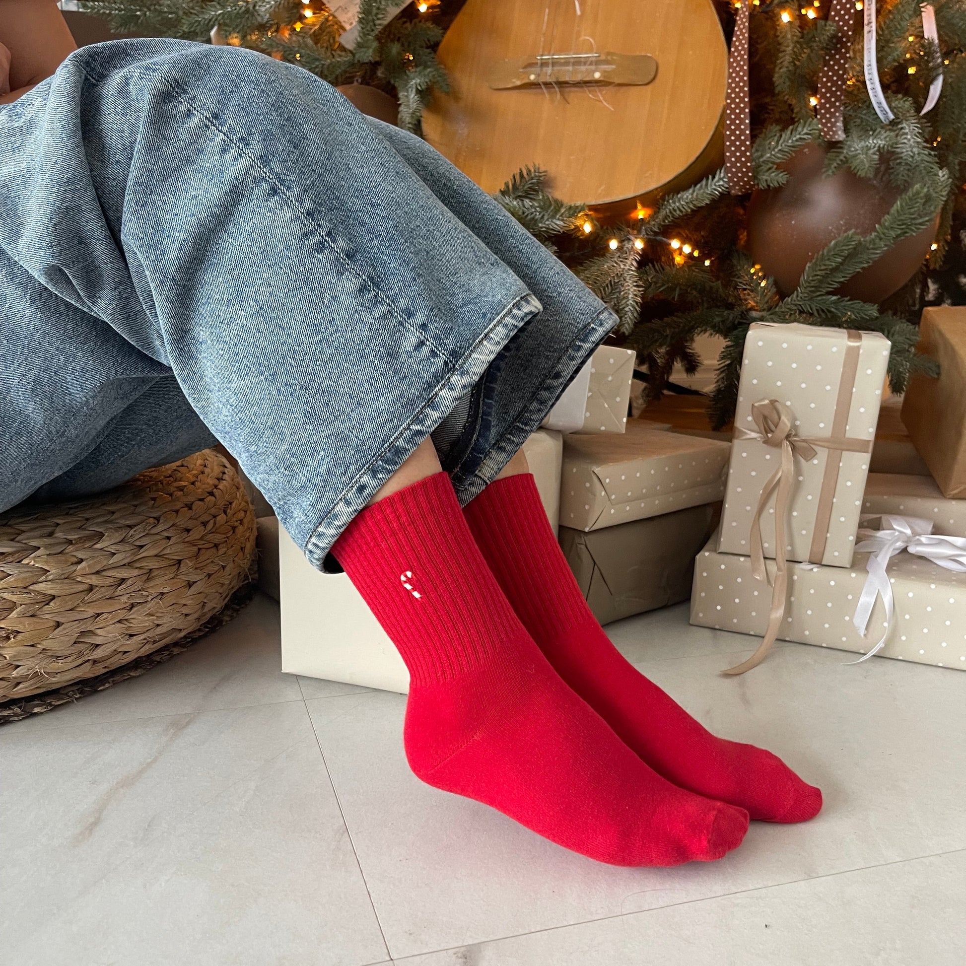 Klasikinės kojinės su išsiuvinėtu Kalėdiniu saldainiuku!