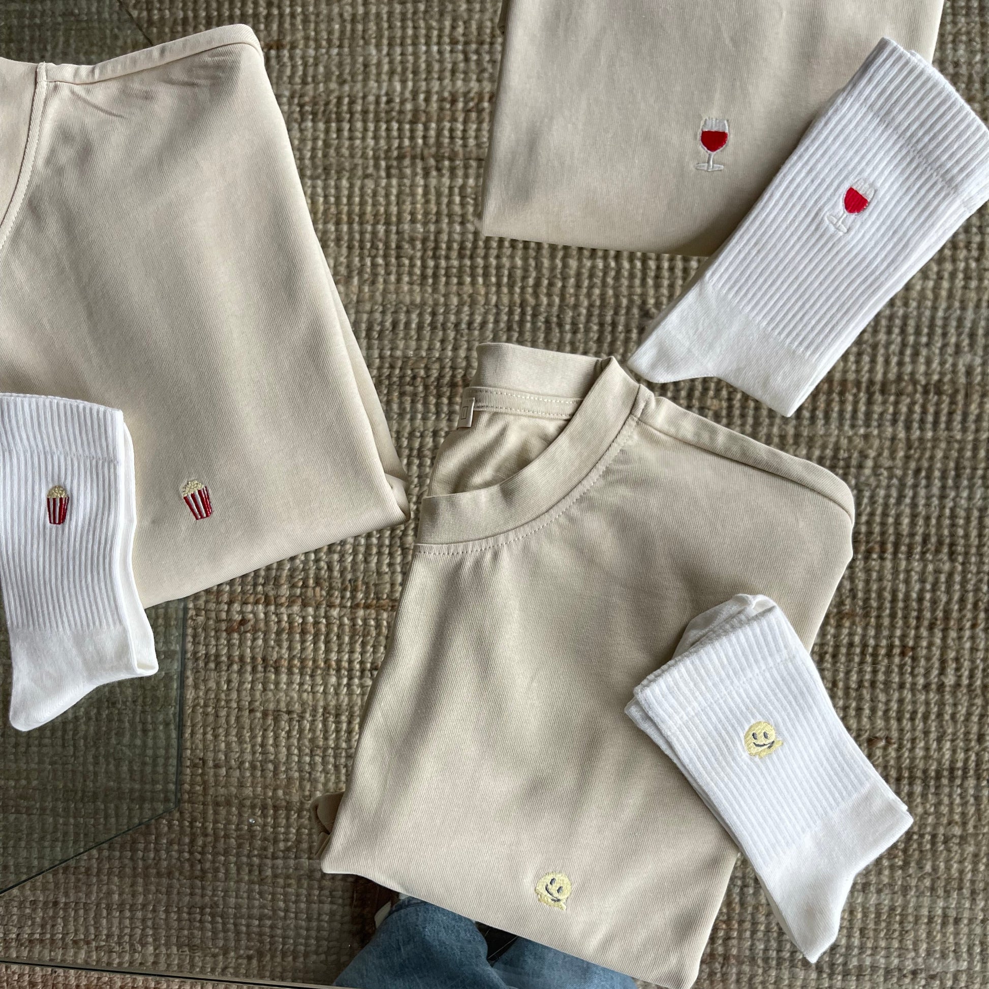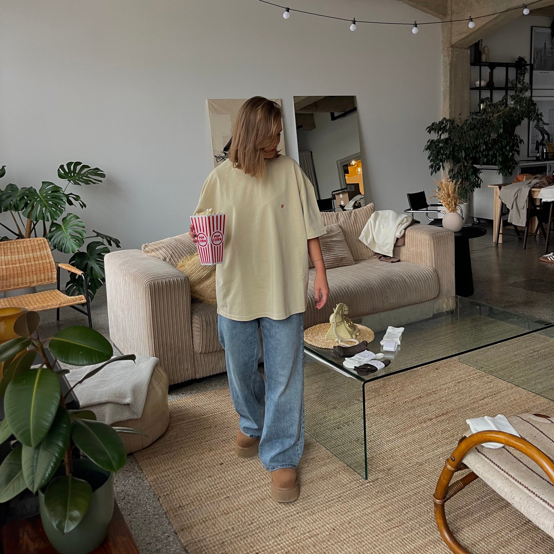 Emoji atspindi prasidėjusius mylimus ritualus: filmų vakarus, karštą vyną ir šiltą nuotaiką. Marškinėliai pasiūti iš standaus audinio, kuris sukuria gražų 'kritimą', stambi apykaklė, extra oversized.